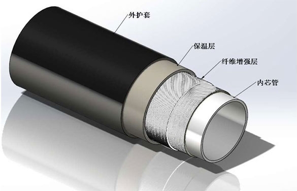 管體由內(nèi)到外分別為:內(nèi)芯管、纖維(滌綸絲)增強(qiáng)、隔熱粘合層、外保護(hù)層